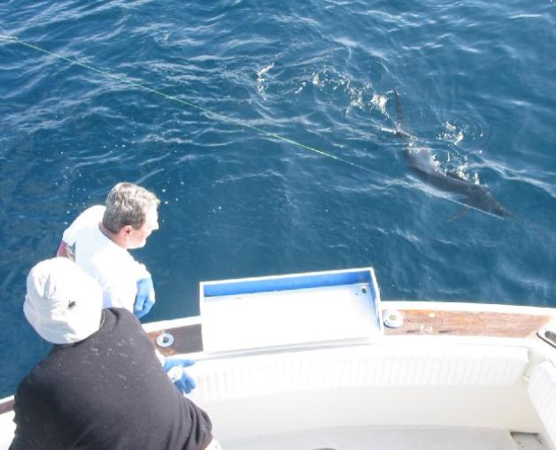 could see the rod tip on the 30 lb outfit bouncing as BD dug in for the bottom. It was a see-saw battle of wits and strength pitting BD's pea size brain against everything that Jonathan and the